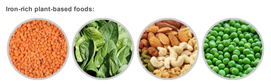 Legumes like lentils, soybeans and kidney beans are great sources of iron as are the dark green leafy vegetables like spinach, kale, and swiss chard. Another way to boost your iron levels is by eating fortified and iron-enriched breakfast cereals. Remember to check the labels to confirm the iron content. Other plant-based