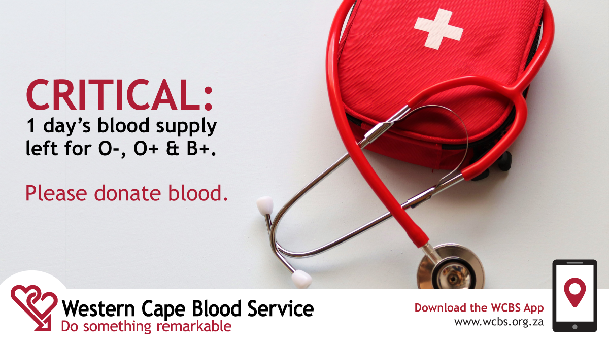Blood stock levels in the Western Cape are declining [...]